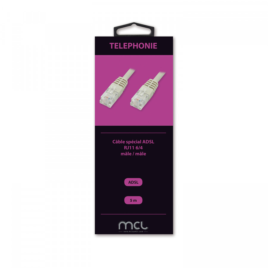 Câble téléphonique spécial ADSL. Il vous permettra de connecter votre modem ADSL type SFR Box, Live Box, Darty Box, Free Box etc... sur votre prise téléphonique.
