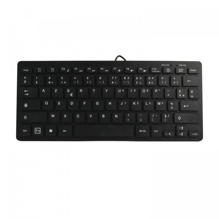 • Mini clavier USB_x000D_• Cordon: 1.20m_x000D_• Clavier standard Azerty à 78 touches_x000D_• Durée de vie: 10 000 000 cycles_x000D_• Conception ergonomique, touches confortables._x000D_• Compatible Windows 98/ME/NT/2000/XP/Vista/7/10 et Android_x000D_• Dimensions : 285x122x22mm