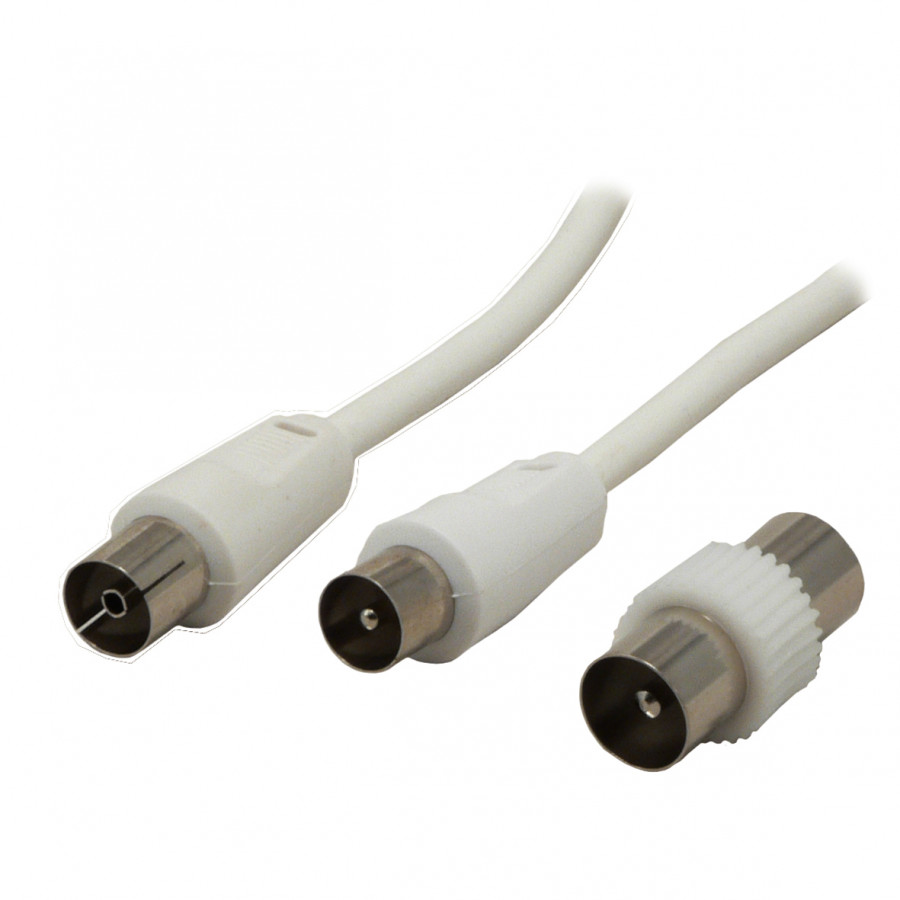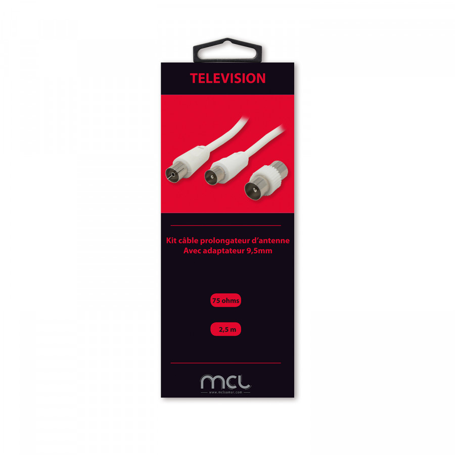 Kit câble prolongateur d'antenne mâle / femelle avec adaptateur 9.52mm mâle / mâle. Ce kit vous permettra de connecter votre téléviseur, magnétoscopte, graveur DVD à l'antenne ou votre magnétoscope, graveur DVD à votre téléviseur.