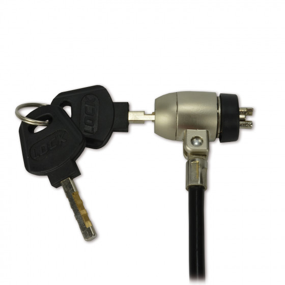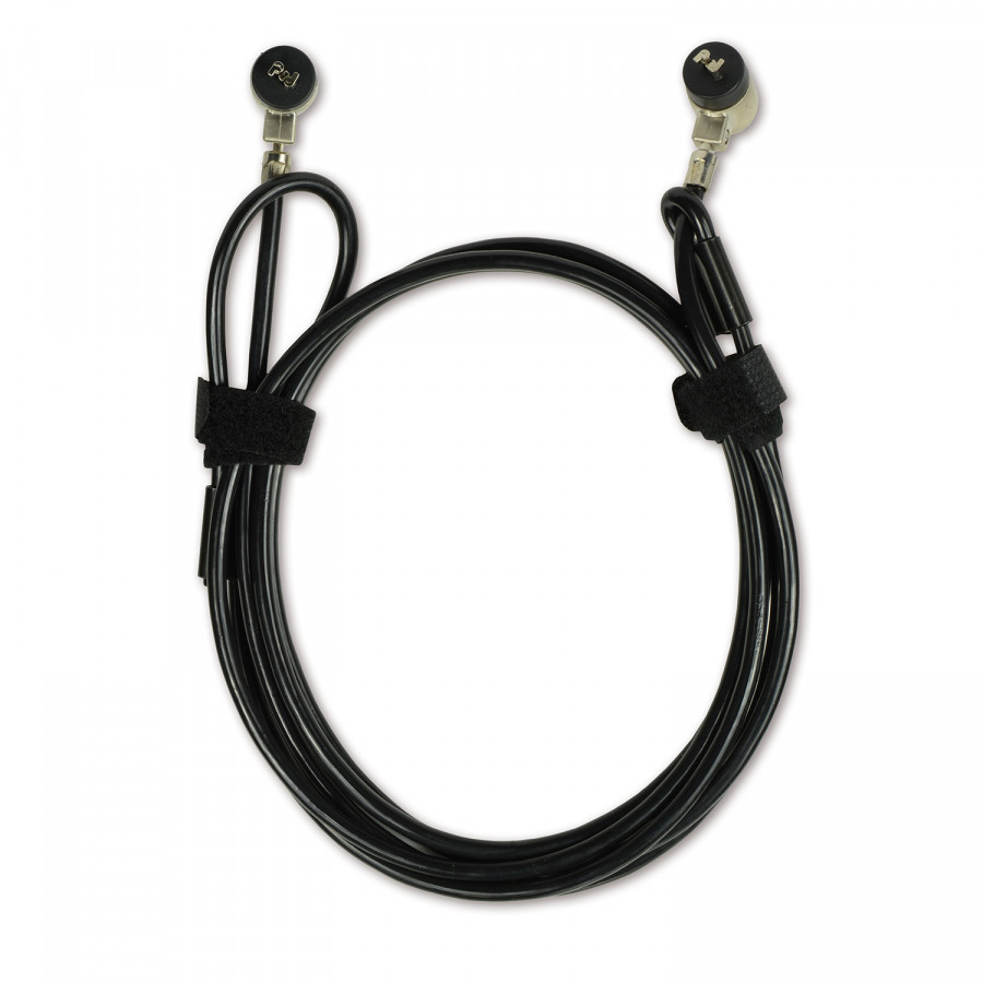 Antivol double à encoche pour les ordinateurs possédant une encoche de sécurité. Egalement utilisable avec les écrans plats ayant une encoche prévue à l’arrière. Il est constitué d'un câble de 1,80m sur lequel peut coulisser un autre câble de 0.4m afin de sécuriser deux matériels.