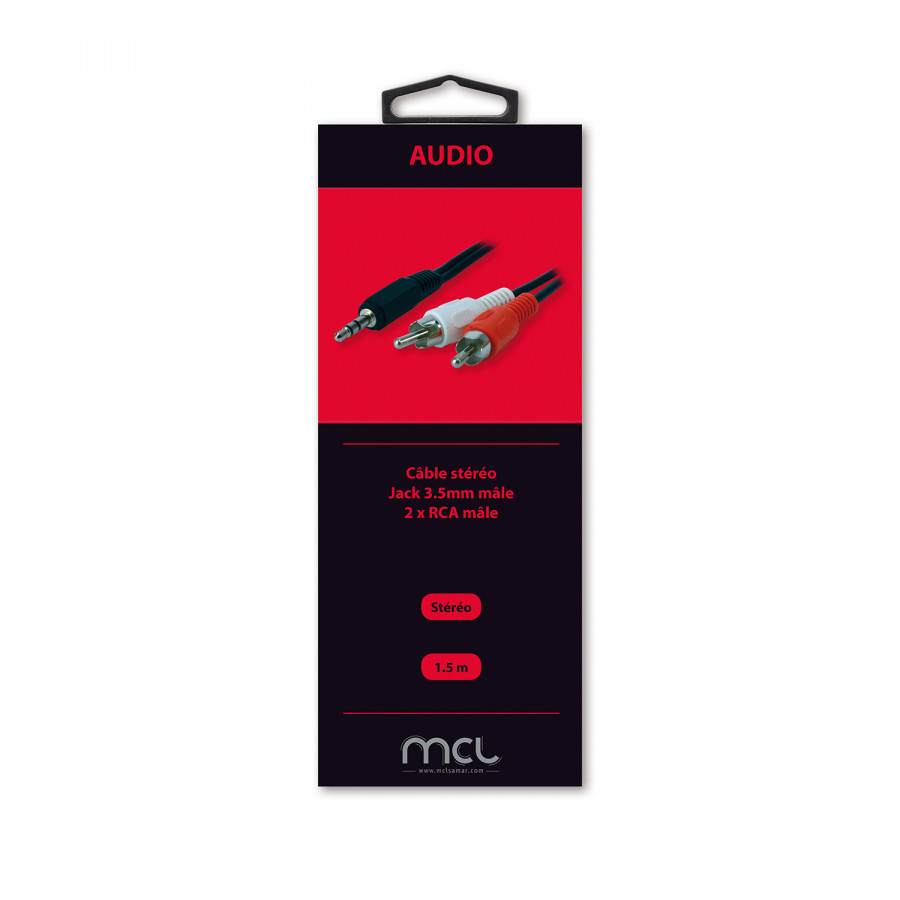 Câble audio stéréo 2 x RCA mâle / jack 3.5 mâle - 1,50m ColorBox