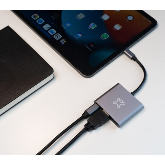 Le port USB-C PD prend en charge le transfert de données à des vitesses allant jusqu’à 40 Gb/s et une charge jusqu’à 100 W pour les MacBook et les iPad, et tous les autres ordinateurs portables dotés de connecteurs Type-C . Le port HDMI permet de diffuser des vidéos haute résolution sur un écran 4K.